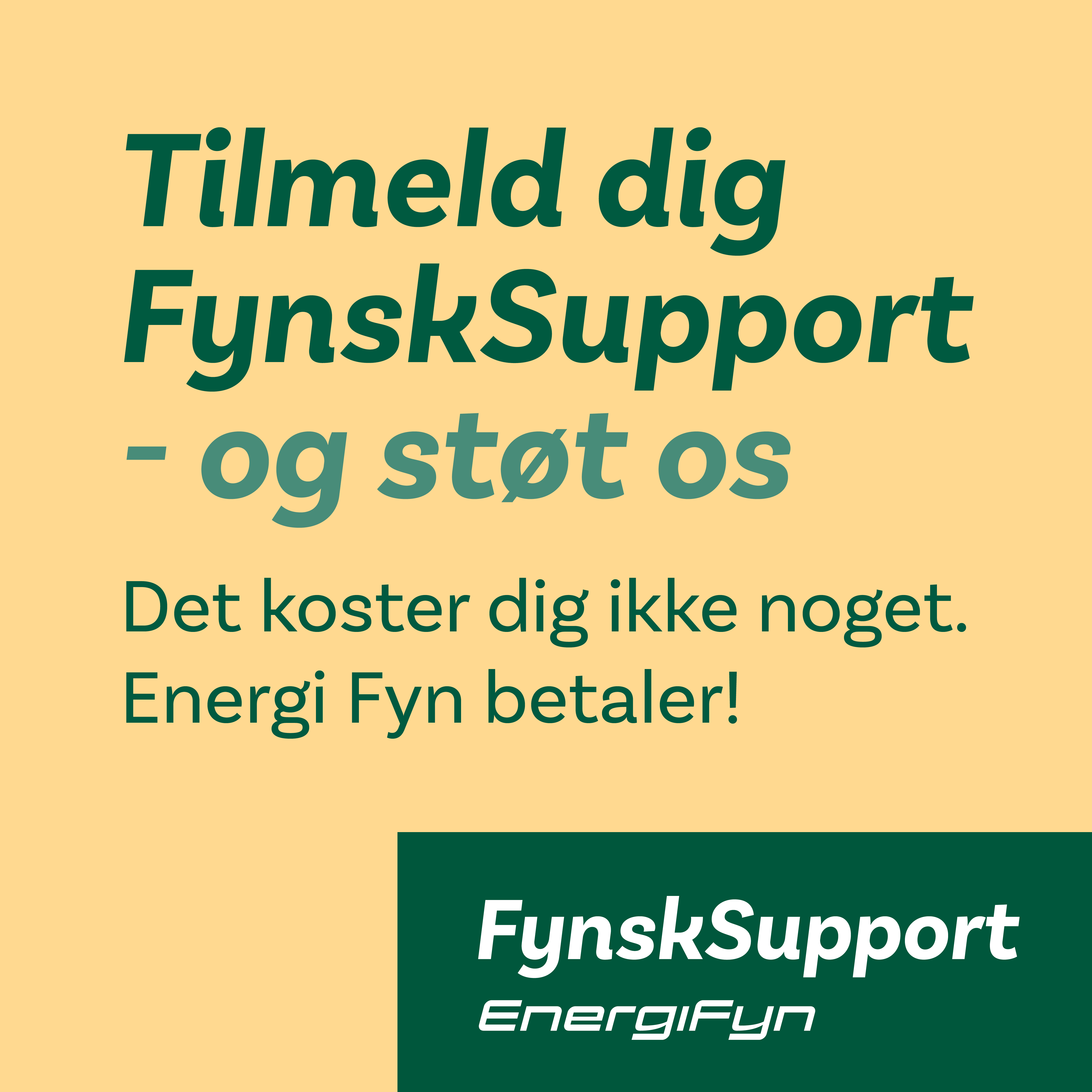Du får din el og naturgas leveret på sædvanlig vis, og vil ikke mærke forskel. Du kan læse mere om ordningen på www.fynsksupport.dk. Har du spørgsmål, er du også velkommen til at kontakte bestyrelsen eller Energi Fyns kundecenter på tlf. 70 13 19 00.